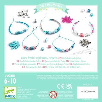 Karkötőkészítő készlet betűkkel és elegáns ezüstfényű gyöngyökkel. |